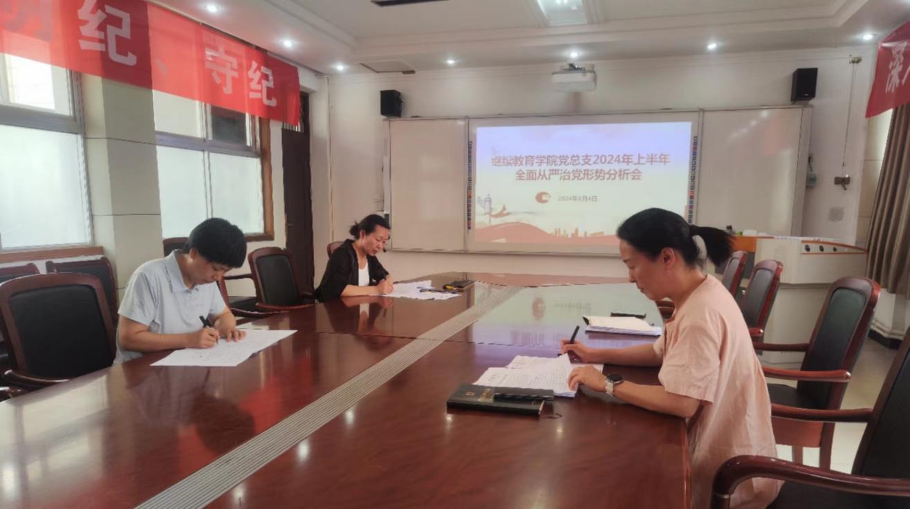 6月4日上午,yl6776永利集团党总支召开2024年上半年全面从严治党形势分析会,会议由党总支书记杨聪聪主持,全体党员参加。