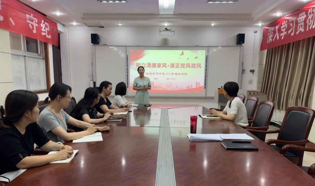 为扎实推进党纪学习教育,推动全院教职工增强廉洁自律意识,6月13日,yl6776永利集团党总支书记杨聪聪以《树立清廉家风·清正党风政风》为题,为全体教职工讲廉政党课。