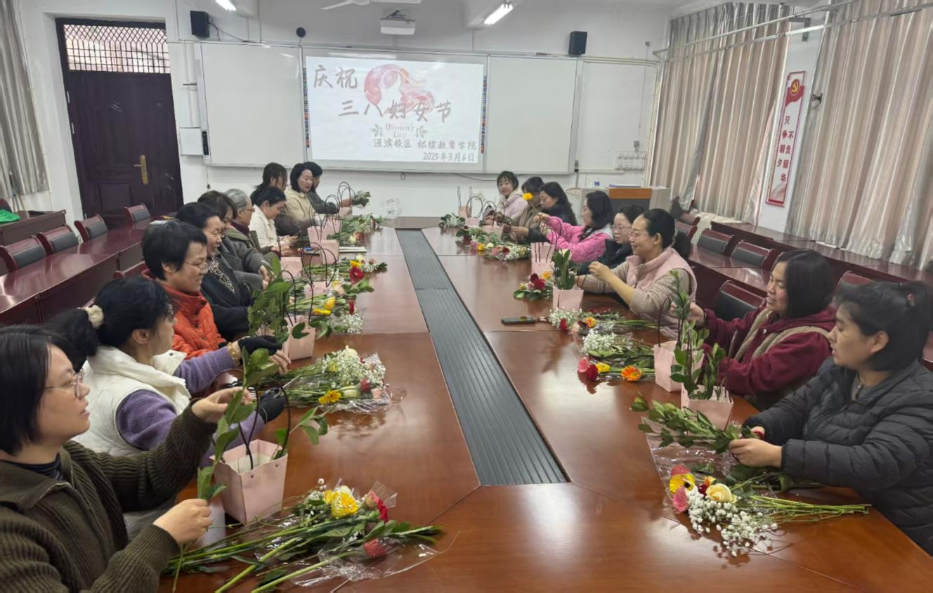 活动现场花香四溢,氛围轻松愉悦。此次活动创新教学方式,学院事先准备了详细的插花教学视频。视频中,专业花艺师从基本的花卉知识,到插花的构图技巧、色彩搭配都进行了细致讲解。女教职工们热情高涨,积极投入到插花创作中。她们充分发挥自己的想象力和创造力,精心挑选花朵,认真修剪枝叶,巧妙搭配色彩。在一双双巧手下,原本零散的花枝逐渐变成了一盆盆造型精美、独具匠心的插花作品。大家互相交流、分享经验,欢声笑语回荡在整个活动现场。