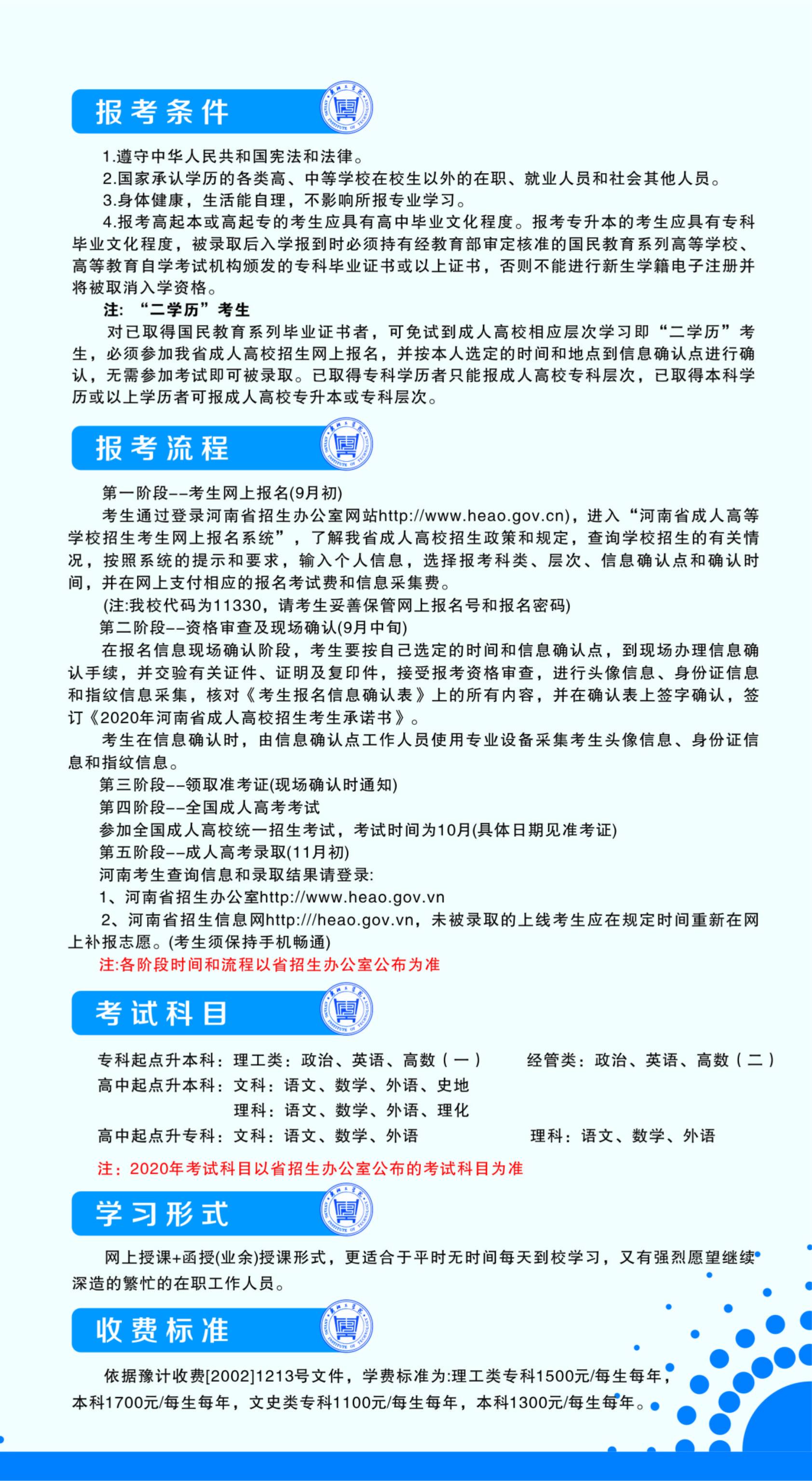 教务学生科:0372-2909999 招生培训科:0372-2909831